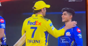 सीएसके के दिग्गज विकेटकीपर बल्लेबाज एमएस धोनी भी खुद को विग्नेश पुथुर की तारीफ करने से नहीं रोक सके। मैच के बाद धोनी और विग्नेश की बातचीत को वीडियो सोशल मीडिया पर तेजी से वायरल हो रहा है। इस वीडियो में साफ नजर आ रहा है कि माही पुथुर की गेंदबाजी से कितने एम्प्रेस हुए हैं। धोनी उन्हें शाबाशी देकर उनकी पीठ भी थपथपा रहे हैं। इस दौरान दोनों के बीच कुछ बातचीत भी हुई। वीडियो देखकर ये तो पता नहीं चल रहा है कि दोनों के बीच क्या बातचीत हुई। लेकिन इस दौरान धोनी ने जो कहा होगा विग्नेश शायद ही उसको कभी भूल पाएं।
