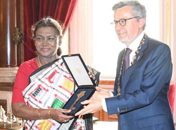 पुर्तगाल की यात्रा के दौरान राष्ट्रपति द्रौपदी मुर्मु को लिस्बन शहर की चाबी से सम्मानित किया