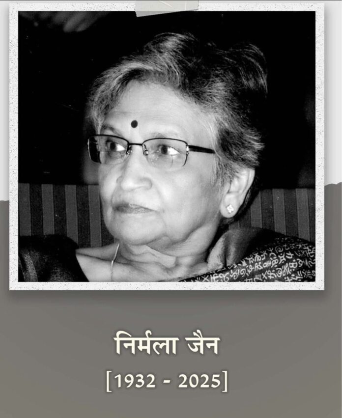 हिंदी की प्रख्यात लेखिका और आलोचक निर्मला जैन का आज तड़के निधन