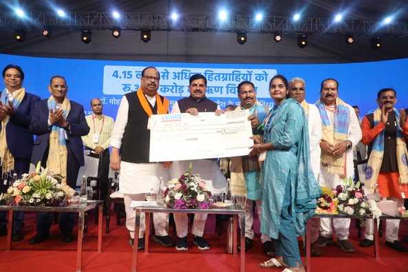 मुख्यमंत्री डॉ. मोहन यादव द्वारा विभिन्न हितग्राहियों को ऋण राशि के चेक वितरण