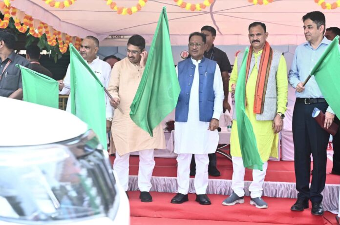 मुख्यमंत्री विष्णु देव साय ने मैदानी स्वास्थ्य अमले के लिए 151 नए वाहनों को दिखाई हरी झंडी