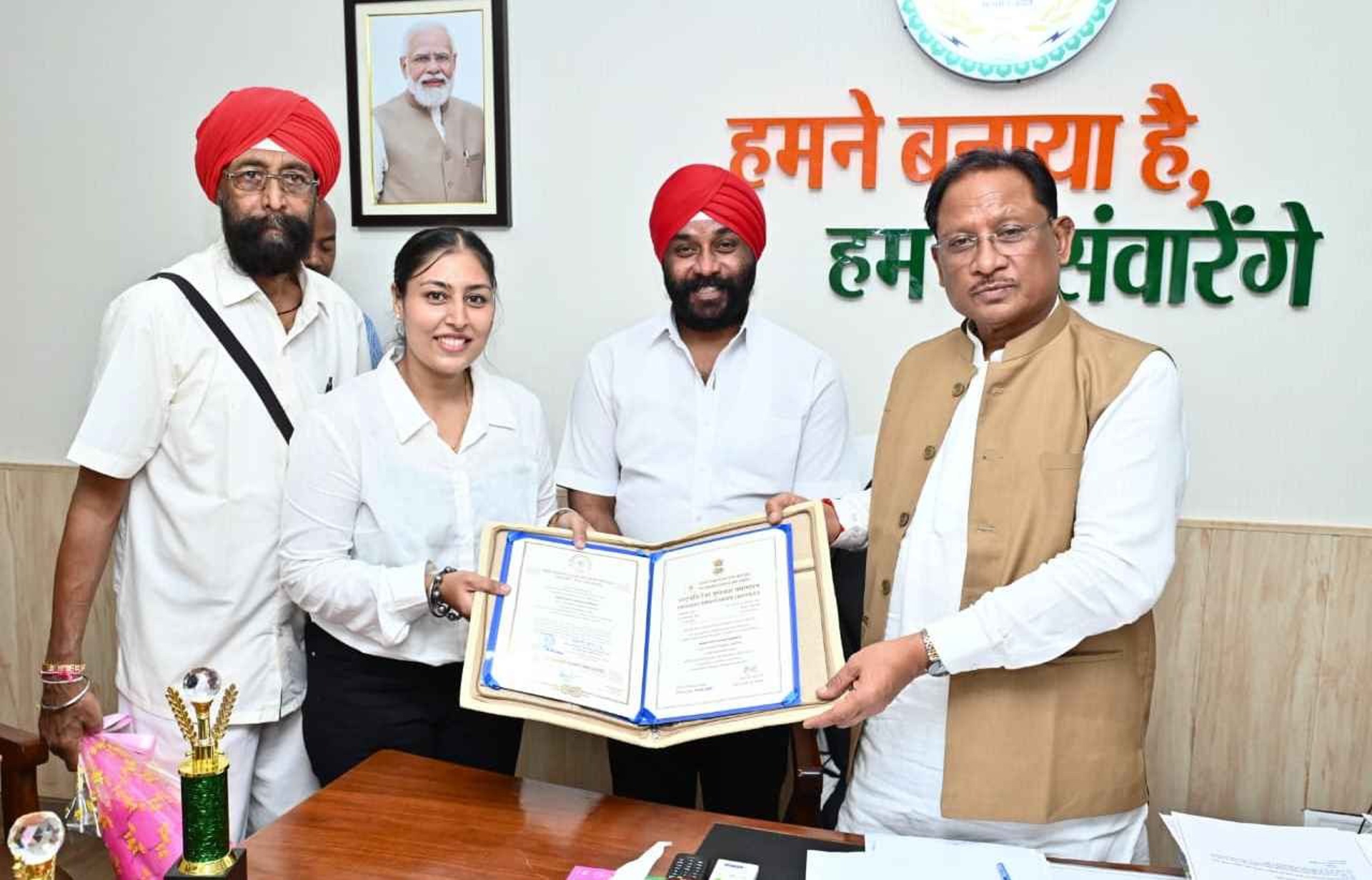 मुख्यमंत्री विष्णु देव साय से राष्ट्रपति सम्मान से सम्मानित देवाशीष और मनतृप्त कौर ने की सौजन्य मुलाकात