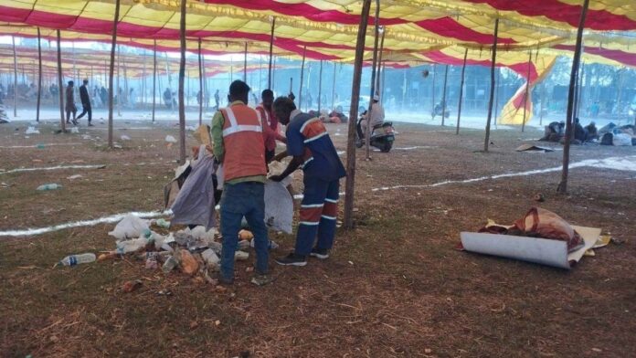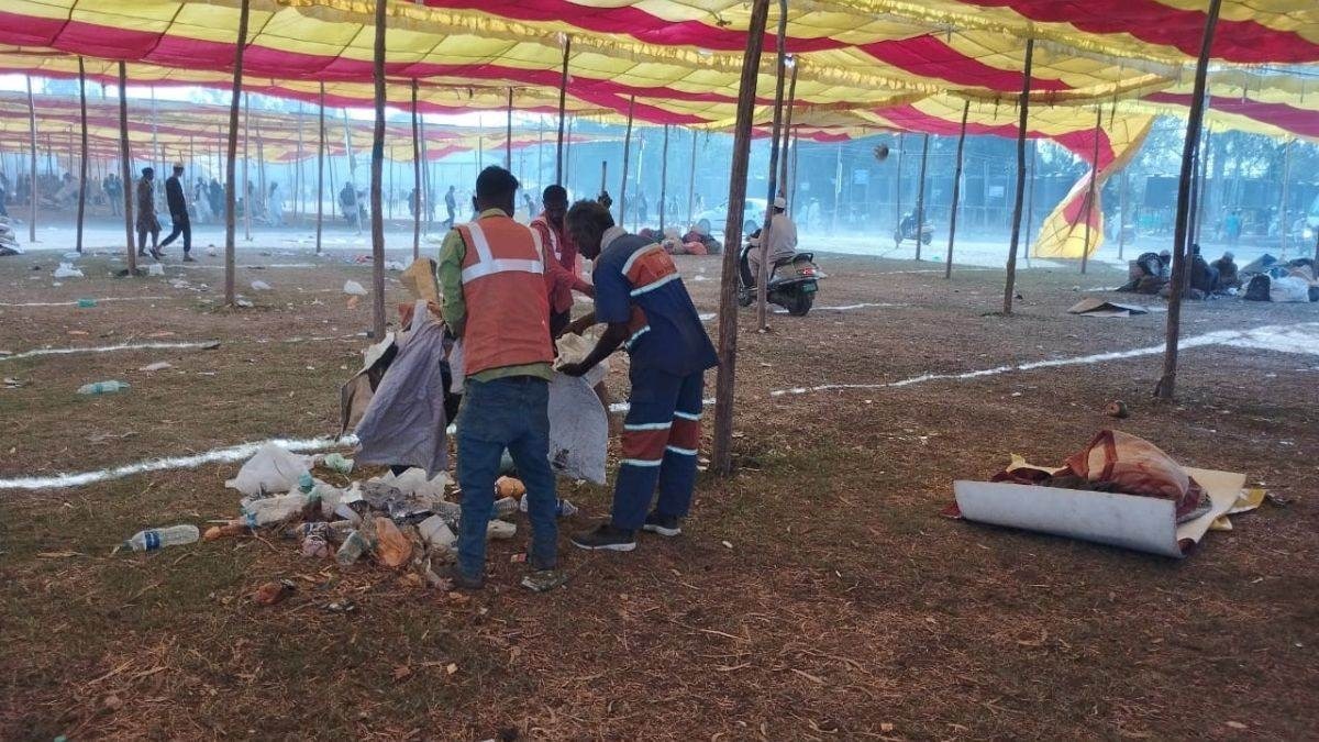 कर्मचारियों ने 120 एकड़ पंडाल, 350 एकड़ पार्किंग और आस-पास की सभी सड़कों की धुलाई व सफाई पूरी की। इस दौरान 30 टन सूखा और 10 टन गीला कचरा जमा कर ट्रांसफर स्टेशनों तक पहुंचाया गया।
