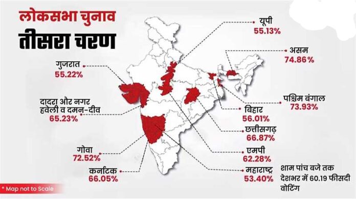 तीसरे चरण के लिए 93 सीटों पर वोटिंग खत्म, 6 बजे तक हुआ 62.11% मतदा