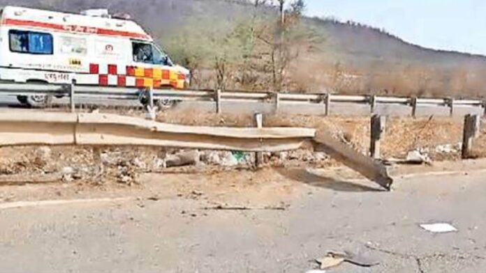हाईवे पर महीनों से टूटी पड़ी रैलिंग से टकराई कार