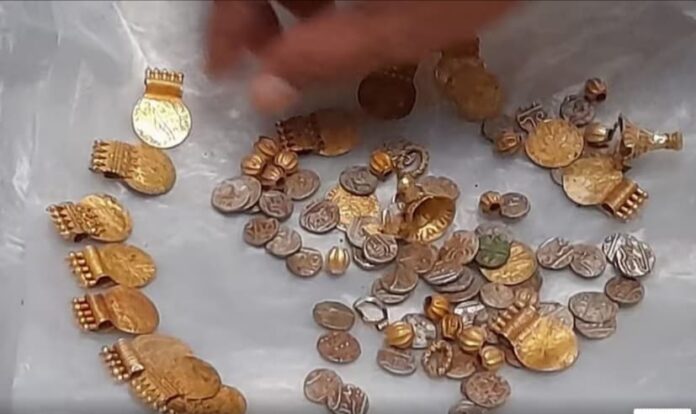 कन्नूर के एक सरकारी स्कूल के पास गुरुवार शाम को जब मजदूर बारिश का पानी इकट्ठा करने के लिए खुदाई करके 1 मीटर गहरा गड्ढा खोद रहे थे। तभी मजदूरों को कीमती सामानों से भरा एक कंटेनर मिला। पुलिस ने जब उसे खोला तो उसमें 17 मोती की माला, 13 सोने के लॉकेट, चार मेडेलियन, पांच प्राचीन अंगूठियां, झुमकों का एक सेट और कई चांदी के सिक्के शामिल हैं।