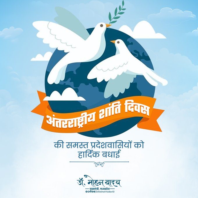 मुख्यमंत्री डॉ मोहन यादव ने प्रदेशवासियो को अंतरराष्ट्रीय शांति दिवस की हार्दिक बधाई दी
