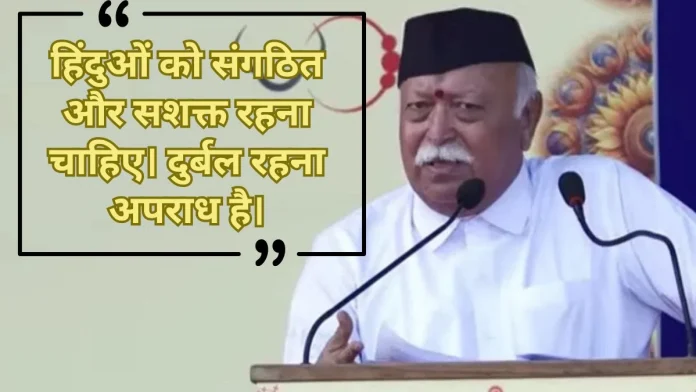 संघ प्रमुख ने कहा कि हिंदुओं की एकता के लिए प्रयास किए जाने चाहिए। हिंदुओं को यह समझना होगा कि उनका दुर्बल या असगंठित होना एक तरह का अपराध है। बांग्लादेश में पिछले दिनों हिंदुओं के खिलाफ अत्याचार हुए। वहां हिंदुओं के खिलाफ हिंसा कौन भड़का रहा है, सभी जानते हैं।