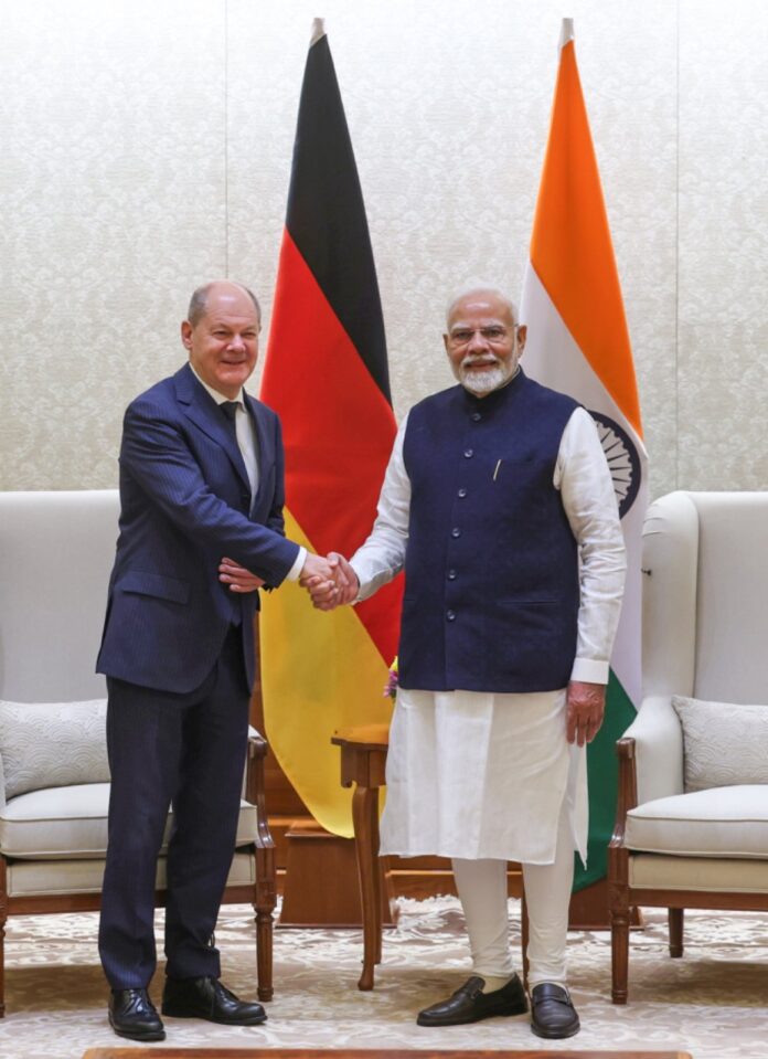 भारत और जर्मनी ने अपने संबंधों को नई रफ्तार देने पर सहमति व्यक्त की है और परस्पर हित के प्रमुख मुद्दों पर चर्चा की है। जर्मनी के चांसलर ओलाफ शोल्ज़ ने आज नई दिल्ली में प्रधानमंत्री नरेन्द्र मोदी से उनके निवास पर मुलाकात की। दोनों नेताओं में अर्थव्यवस्था, निवेश और विनिर्माण, प्रौद्योगिकी और नवाचार, रक्षा तथा सुरक्षा और प्रतिभा के आवागमन के क्षेत्रों में सहयोग बढ़ाने पर भी चर्चा की।