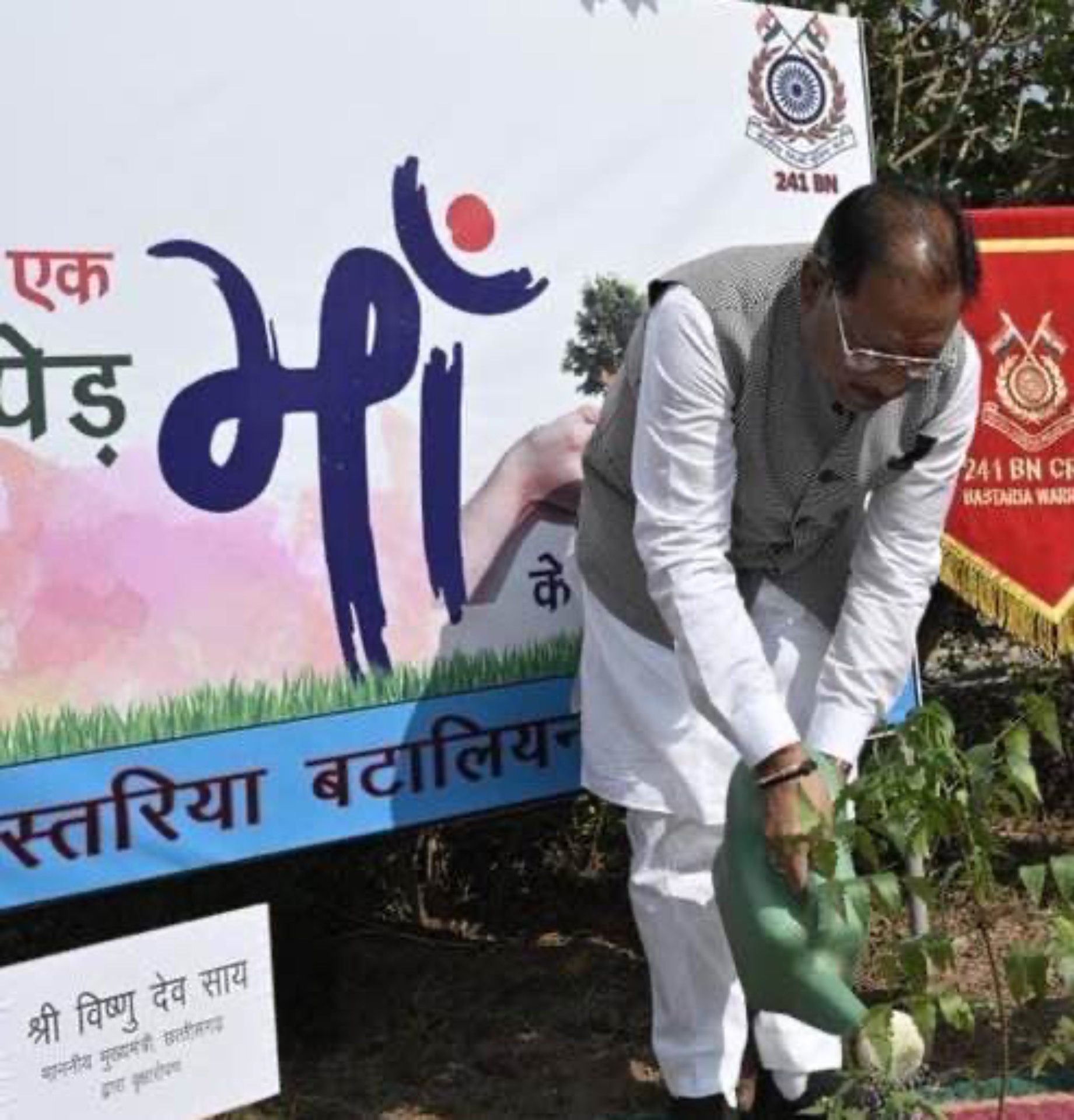 मुख्यमंत्री विष्णु देव साय ने “एक पेड़ मां के नाम” अभियान के तहत सीआरपीएफ के बस्तरिया बटालियन परिसर में लगाया नीम का पौधा