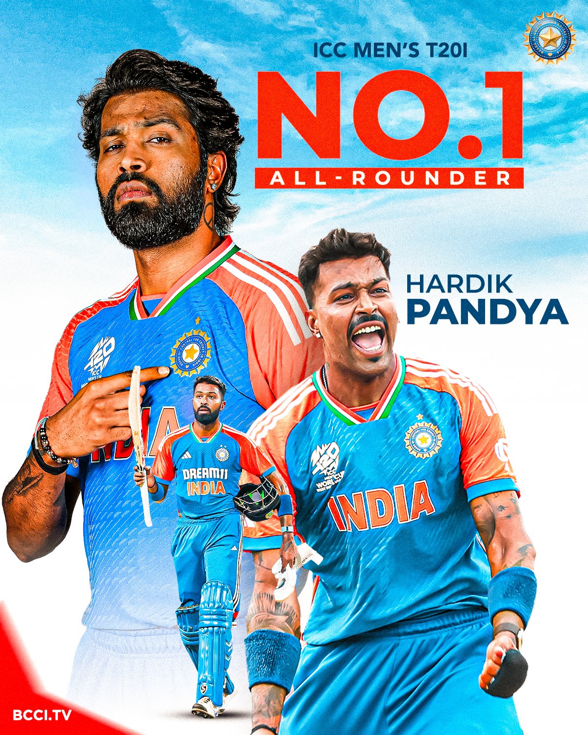 आईसीसी टी-20 रैंकिंग: हार्दिक पांड्या बने दुनिया के नंबर वन ऑलराउंडर